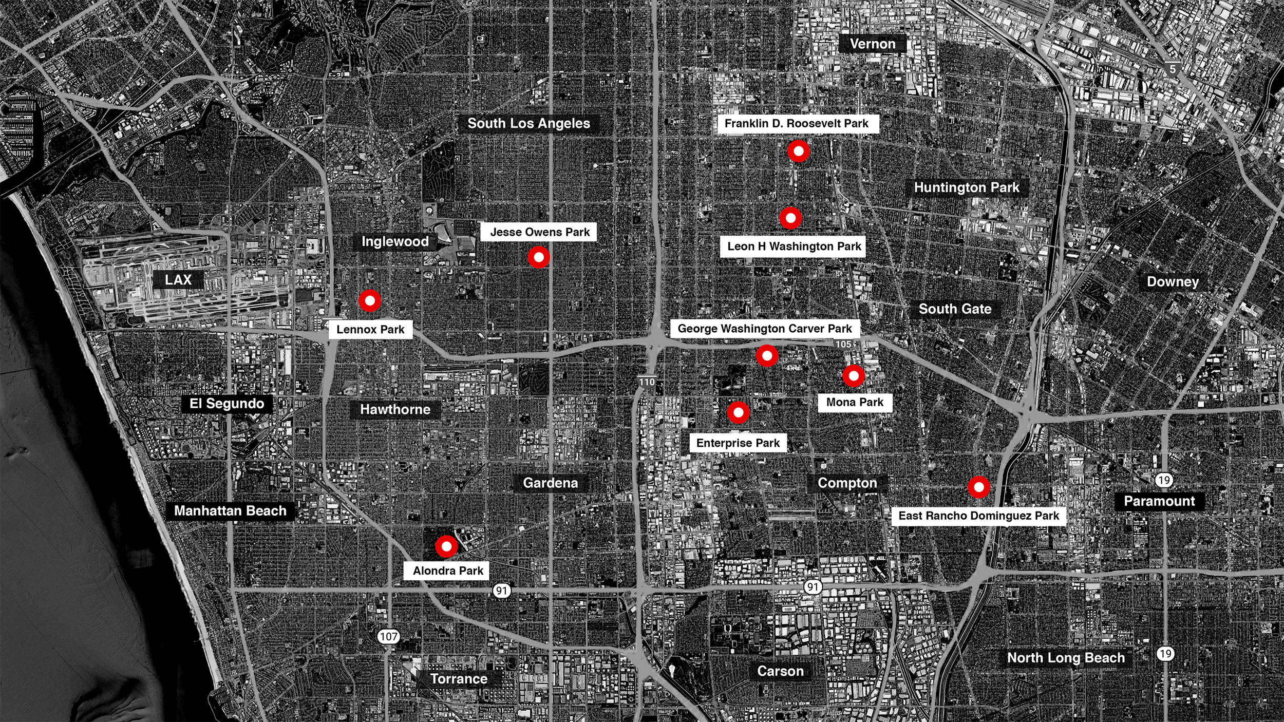 Cursive LA is a public artwork inspired by the character and diversity of Los Angeles. Using the abbreviation “LA,” the piece links the nine selected park sites through a shared visual language.
